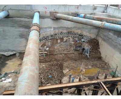 管幕地铁车站施工,即管幕工法建造超浅埋直墙平顶结构地铁车站,是一种新型的地下工程暗挖建造技术,大直径钢管顶入土中,相邻钢管用螺栓和钢板连接,然后挖出管内的土灌注混凝土,形成整体的钢管混凝土平顶结构,从而在开挖前形成钢管-混凝土支护体系,然后在管幕下开挖地铁车站。