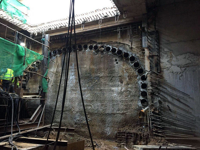管幕用于在土壤开挖前建造地下建筑的屋顶和侧墙,在土壤开挖阶段起到支撑和挡水的作用,是主体结构的一部分。它不需要修建基坑围护结构和降水,从而节省了大量的建设资金和工期。